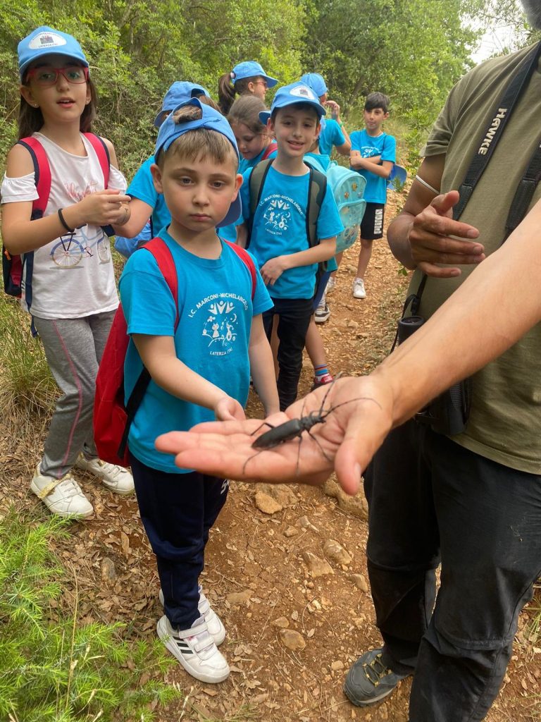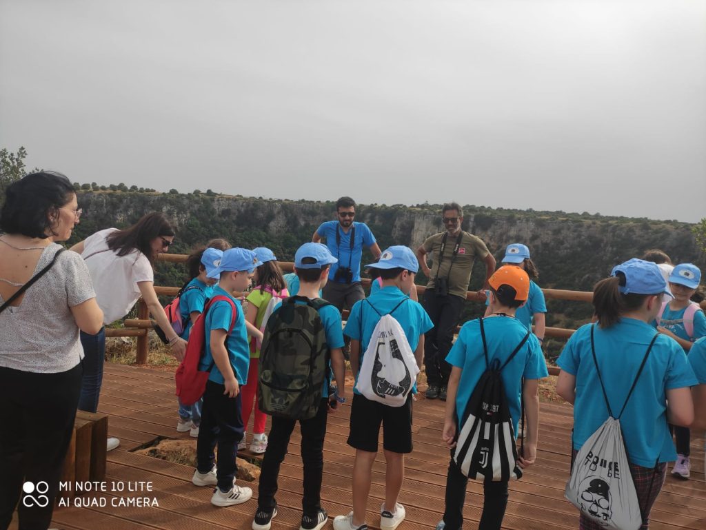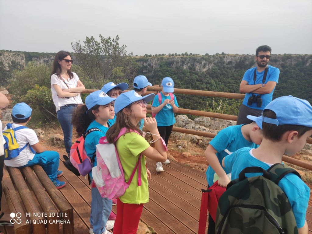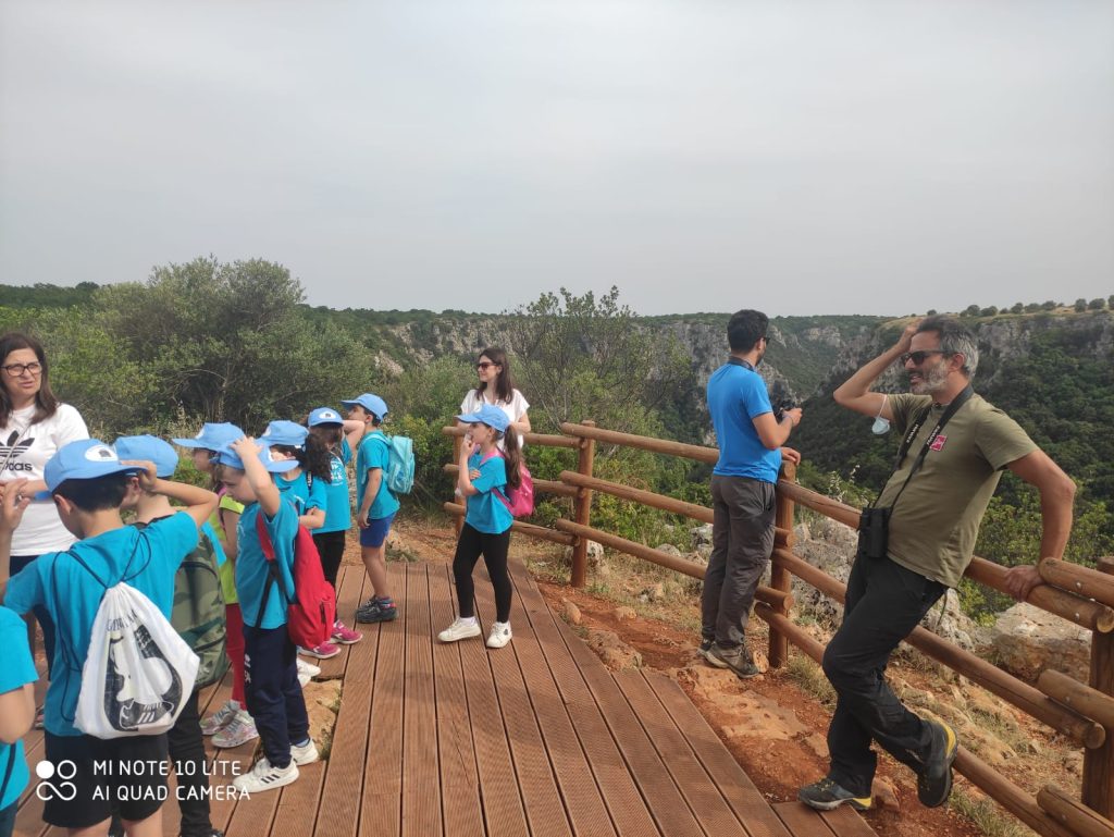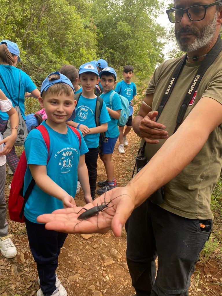 È seguita poco dopo un’escursione guidata lungo i sentieri della Gravina dove i bambini hanno assaporata direttamente il contatto con l’ambiente in un paesaggio apparentemente aspro e severo, ma in fondo accogliente per gli uomini, per le piante e per gli animali. Accarezzati dalla spontaneità e dalla rigogliosità della natura ed estasiati dalla pacatezza di un coleottero che gradiva il contatto umano, i bambini hanno concluso la visita all’Oasi arricchiti da una nuova e felicissima esperienza.
