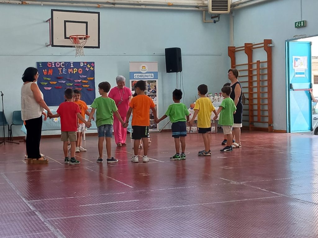 Oggi 5 luglio si è concluso con la manifestazione finale il Percorso Pon “I giochi di un tempo…”, tale momento, oltre alla dimostrazione di alcuni giochi caratteristici del passato da parte dei piccoli, è stato allietato anche dalla presenza dell’auser-UTEP che, con grande entusiasmo insieme all’allegria dei bambini e delle insegnanti hanno fatto rivivere “ricordi” di vita di un tempo…