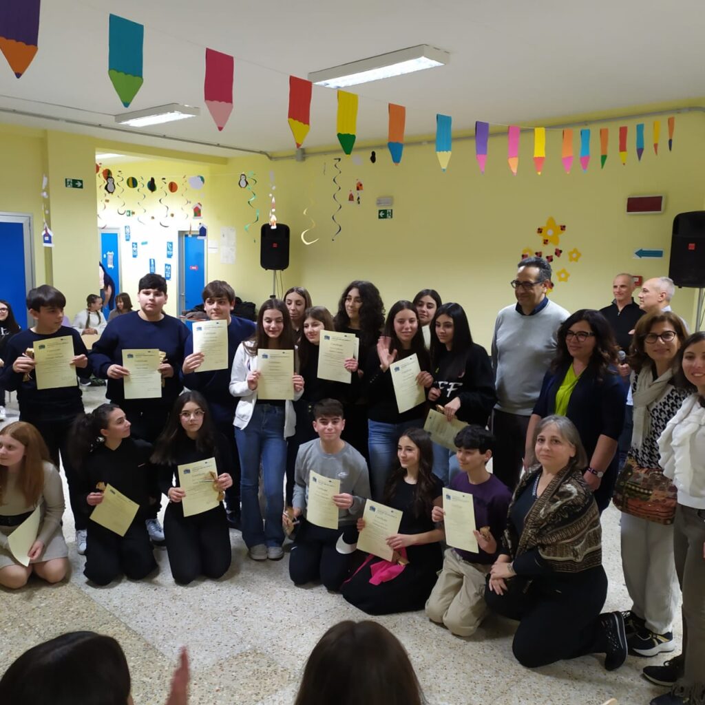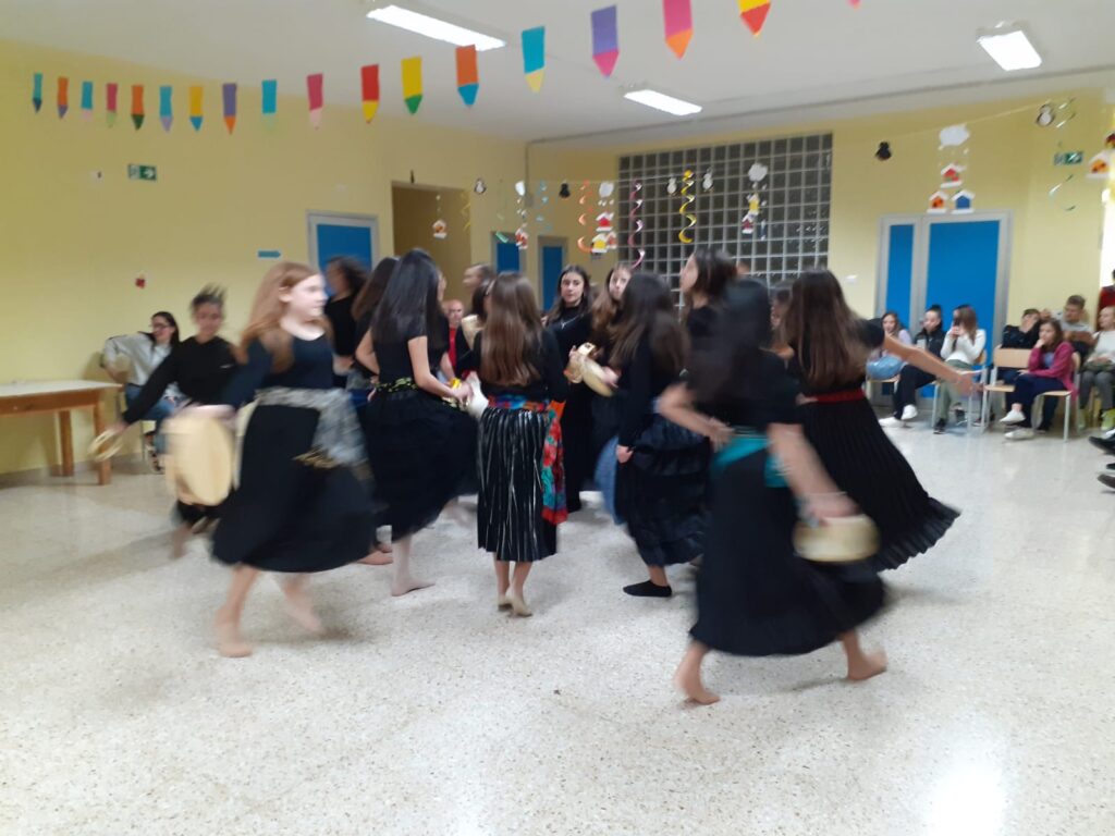 Mercoledì 22 Marzo 2023, serata di festa alla Michelangelo. I nostri studenti hanno presentato ai nostri ospiti la pizzica. I genitori hanno allestito il buffet facendo assaporare le pietanze tipiche della nostra tradizione culinaria. Sono stati consegnati gli attestati alle diverse delegazioni con portachiavi ad uncinetto e saponette profumate, tutto rigorosamente handmade e tutto condito da balli, giochi e l’allegria dei ragazzi.