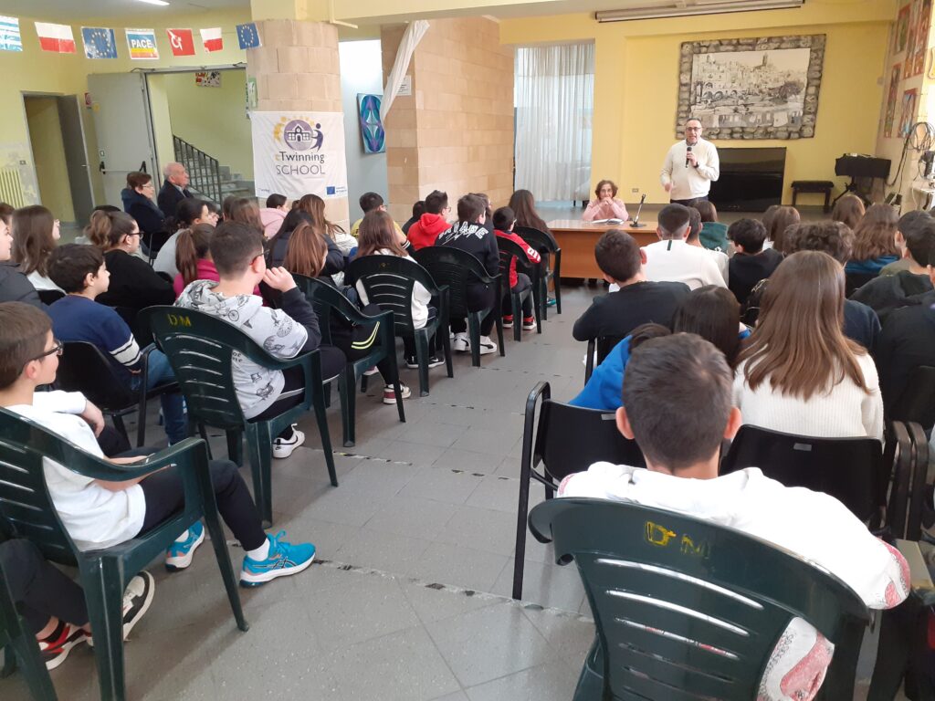 Il 7 febbraio nell’auditorium della Michelangelo la maestra Imperia Farella ha incontrato i ragazzi delle classi prime della scuola secondaria di primo grado. Tema dell’incontro la storia del campo 65 di Altamura. Cogliamo l’occasione di questo secondo incontro con i ragazzi per ringraziare la maestra Farella per la sua disponibilità.
